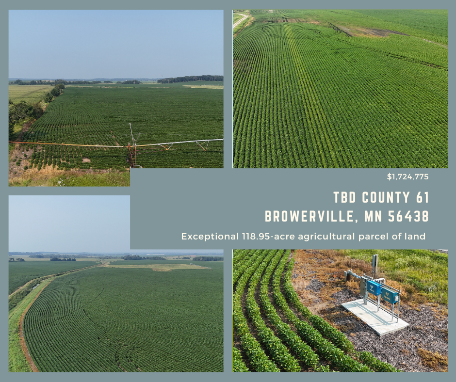 Discover a rare opportunity to own two remarkable tracts of prime agricultural land along the scenic County Road 61 in Browerville, Minnesota. Whether you're an experienced farmer looking to expand or an investor seeking a high-potential asset, these side-by-side parcels offer unmatched value, cutting-edge irrigation systems, and an ideal mix of productivity and natural beauty.