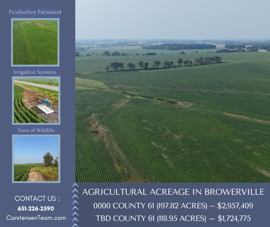 Don’t miss your chance to own these premier agricultural properties in Browerville, MN. For more information or to schedule a private tour, contact Michelle Carstensen with RE/MAX Results at 651-226-2590 today.